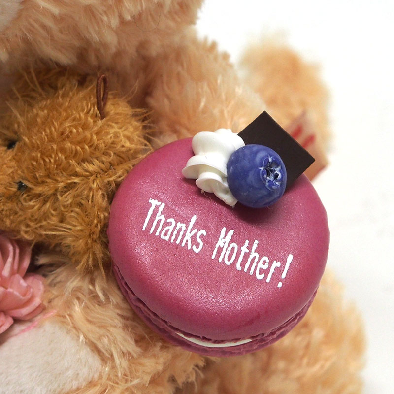 本物そっくりのマカロン(紙粘土製)には「Thanks Mother!」のメッセージが入っています。